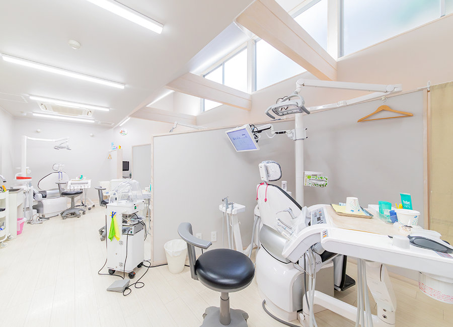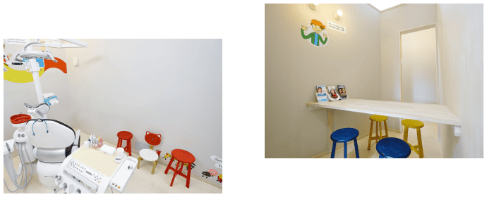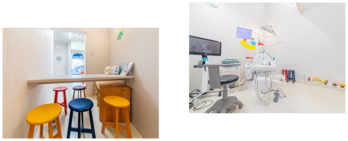 当院ではお子さまと一緒に治療を受けられるファミリースペースをご用意しております。不安を少しでも軽減できるように、お子さまが楽しく過ごせる雰囲気づくり、そして親御さまがどの様なことでも気軽に相談できる、明るく優しい対応に努めております。